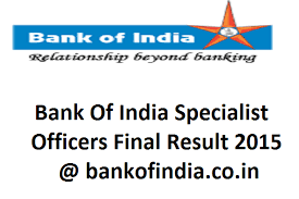 The Bank of India has released the final results for its exam conducted for the post of Specialist Officers (SO).
