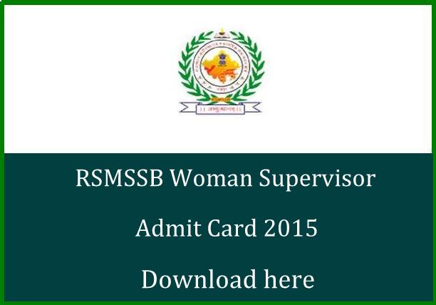 The latest news is that the RSMSSB woman supervisor Admit Card 2015 has been released on 13 December.