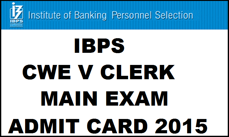 Institute of Banking Personnel Selection (IBPS) has issued the admit card for Common Recruitment Process for Clerks 5 (CWE) main exam 2015. The IBPS Clerk CWE 5 Main Exam Admit Card is now available for download from December 22, 2015.