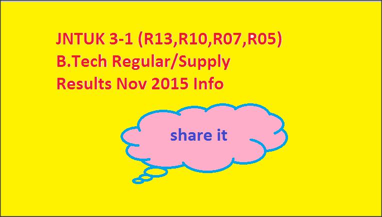 Candidates can also click on the direct link provided below to access and download their results: http://jntukresults.org/jntuk-btech-3-1-r13-r10-r07-regular-supply-results-nov-2015.html
