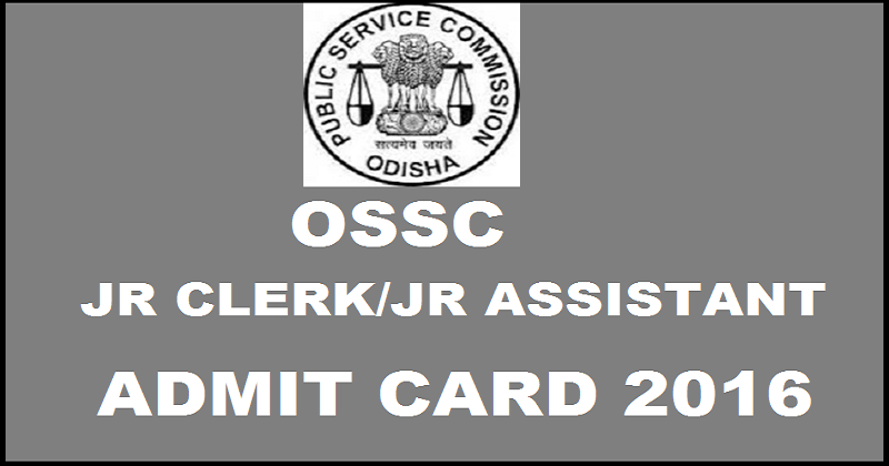 The Odisha Staff Selection Commission (OSSC) has released the admit cards for its upcoming Junior Clerk and Junior Assistant examination 2016.