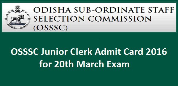 OSSSC Junior Clerk (Group-C Civil) Admit Card 2016