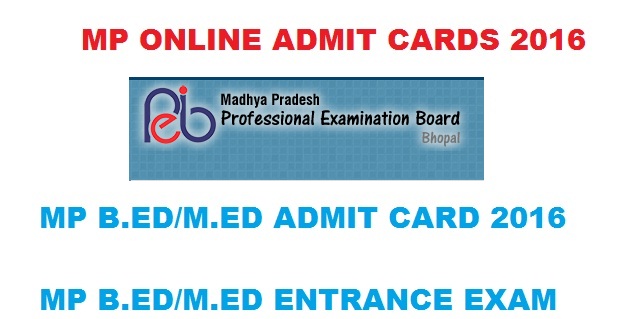 Madhya Pradesh Vyavsayik Pareeksha Mandal which is also popularly referred to as MPPEB has released the Admit Card/Hall Ticket for the Entrance exam 2016 for admitting eligible candidates in the combined three-year (B.Ed.-M.Ed.) course.