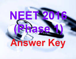 - The NEET Phase I 2016 Answer Key (May 1st) will appear on the screen.