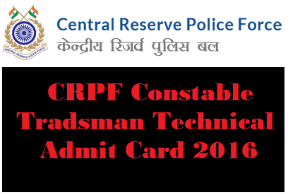 The Central Reserve Police Force (CRPF) has released the Constable Tradesman Admit Card 2016. The Constable Tradesman Admit Card 2016 is now available on the official website.