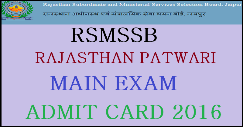 The Rajasthan Subordinate and Ministerial Services Selection Board (RSMSSB) has released the Admit Card for its upcoming Patwari Mains Exam 2015.