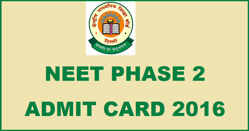Central Board of Secondary Education, Delhi will soon release the admit card for its upcoming NEET (NATIONAL ELIGIBILITY CUM ENTRANCE TEST-II ) Phase 2 for admission to MBBS/BDS Courses in Medical/Dental Colleges across India.