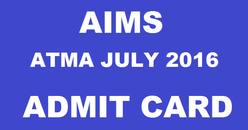 The Association of Indian Management Schools (AIMS) has released the admit card for its upcoming AIMS Test for Management Admissions (ATMA) July 2016.