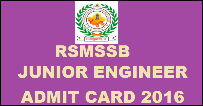 Rajasthan Subordinate and Ministerial Services Selection Board (RSMSSB) has released the admit card for its upcoming JE (Junior Engineer) examination 2016.